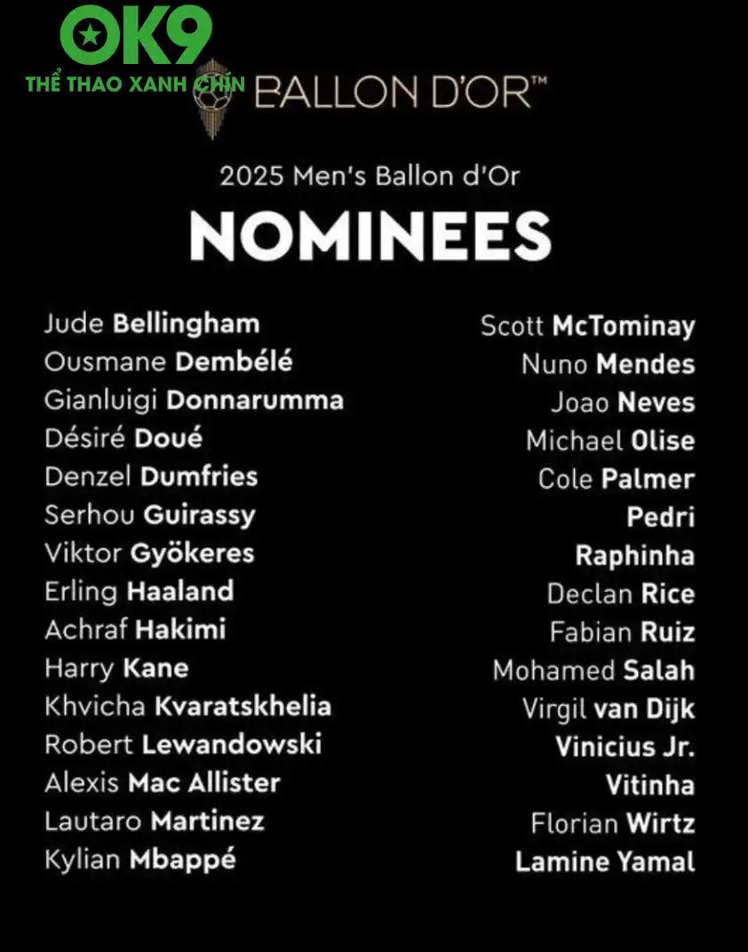 OK9 COOL xin khẳng định, sự minh bạch và công bằng là tiêu chí hàng đầu của giải thưởng Quả bóng Vàng. Việc bầu chọn được thực hiện bởi 100 nhà báo đến từ 100 quốc gia được FIFA công nhận, đảm bảo tính khách quan và đại diện cho toàn bộ cộng đồng bóng đá thế giới.